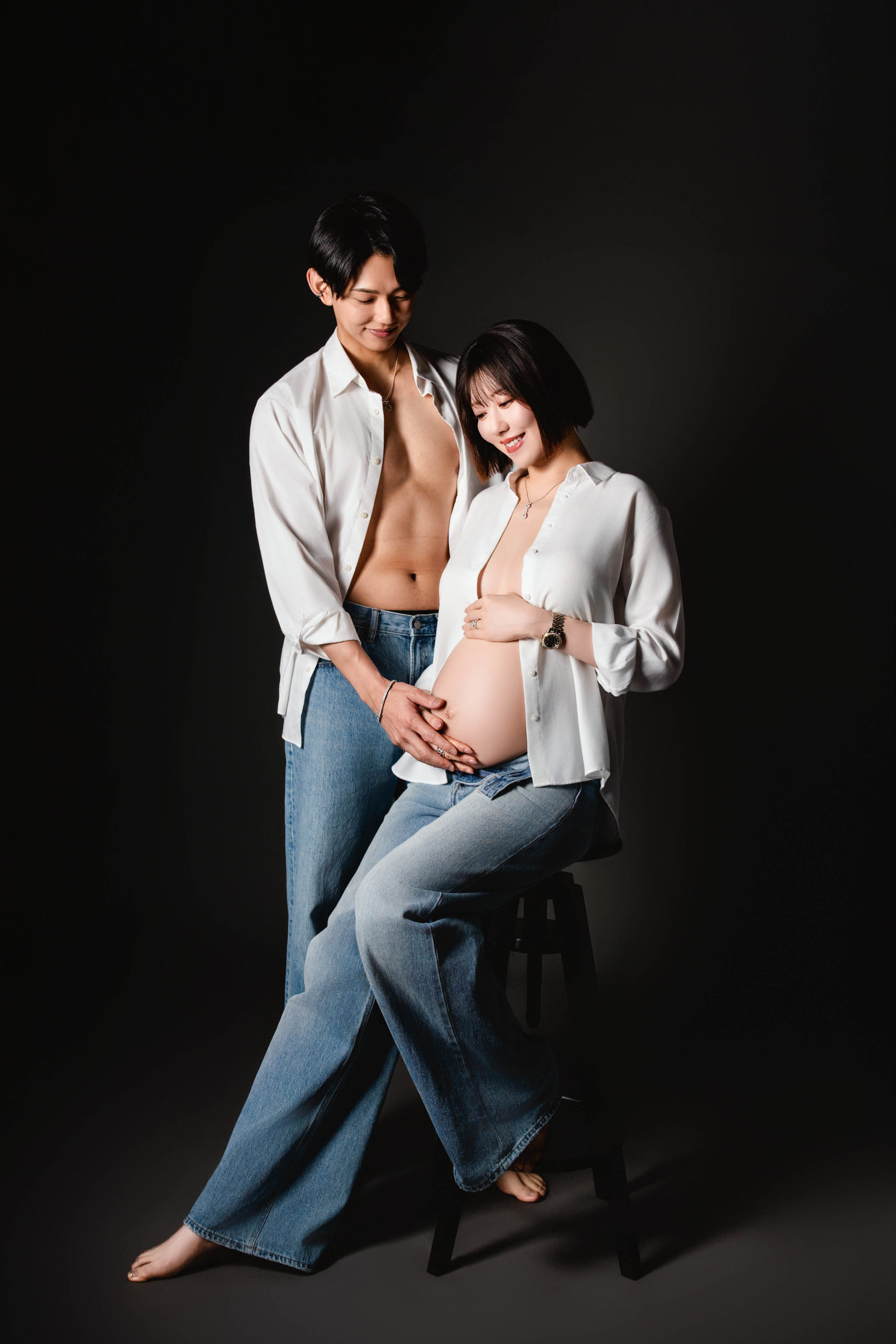 撮影の途中、夫がふと私のお腹を見つめながら、