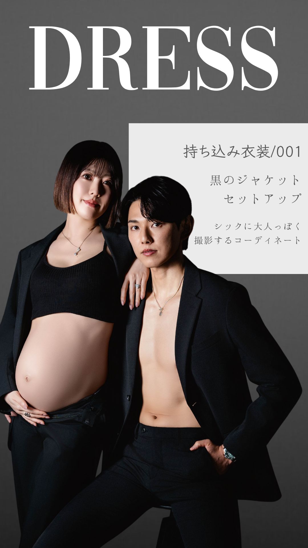 → ご安心ください。スタンダードコースではおしゃれなマタニティドレスをご用意しています。持ち込みももちろんOKなので、思い入れのある服での撮影も可能です。