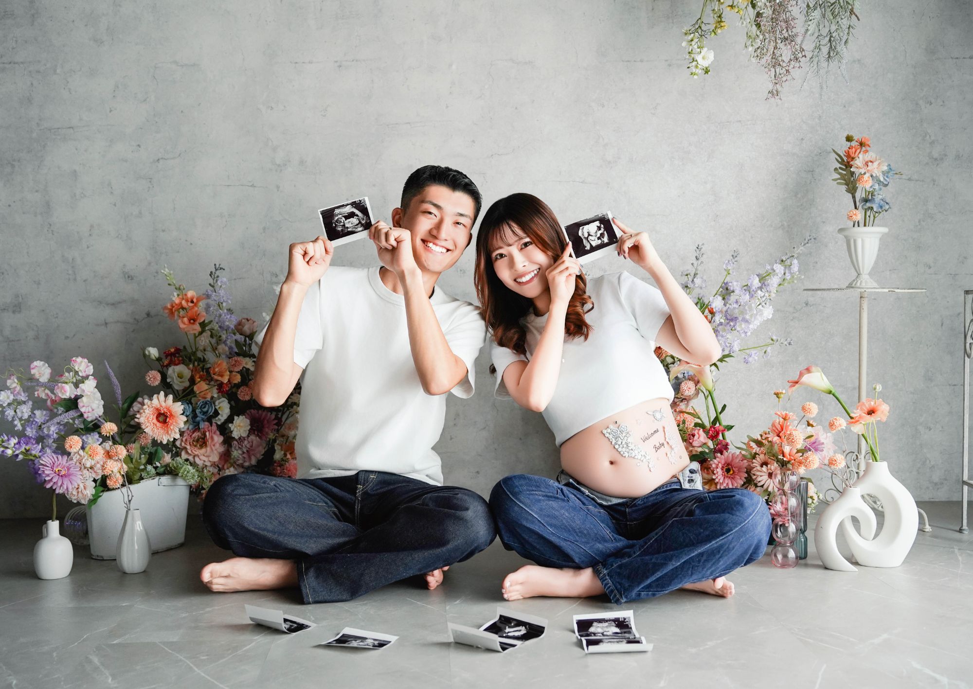 手の位置や足の位置は?初めての撮影では戸惑ったりしますよね。お客様がより美しく映るようにお腹の向き、顎の位置、手を添える位置などスタッフが適切に誘導して整えてまいります。