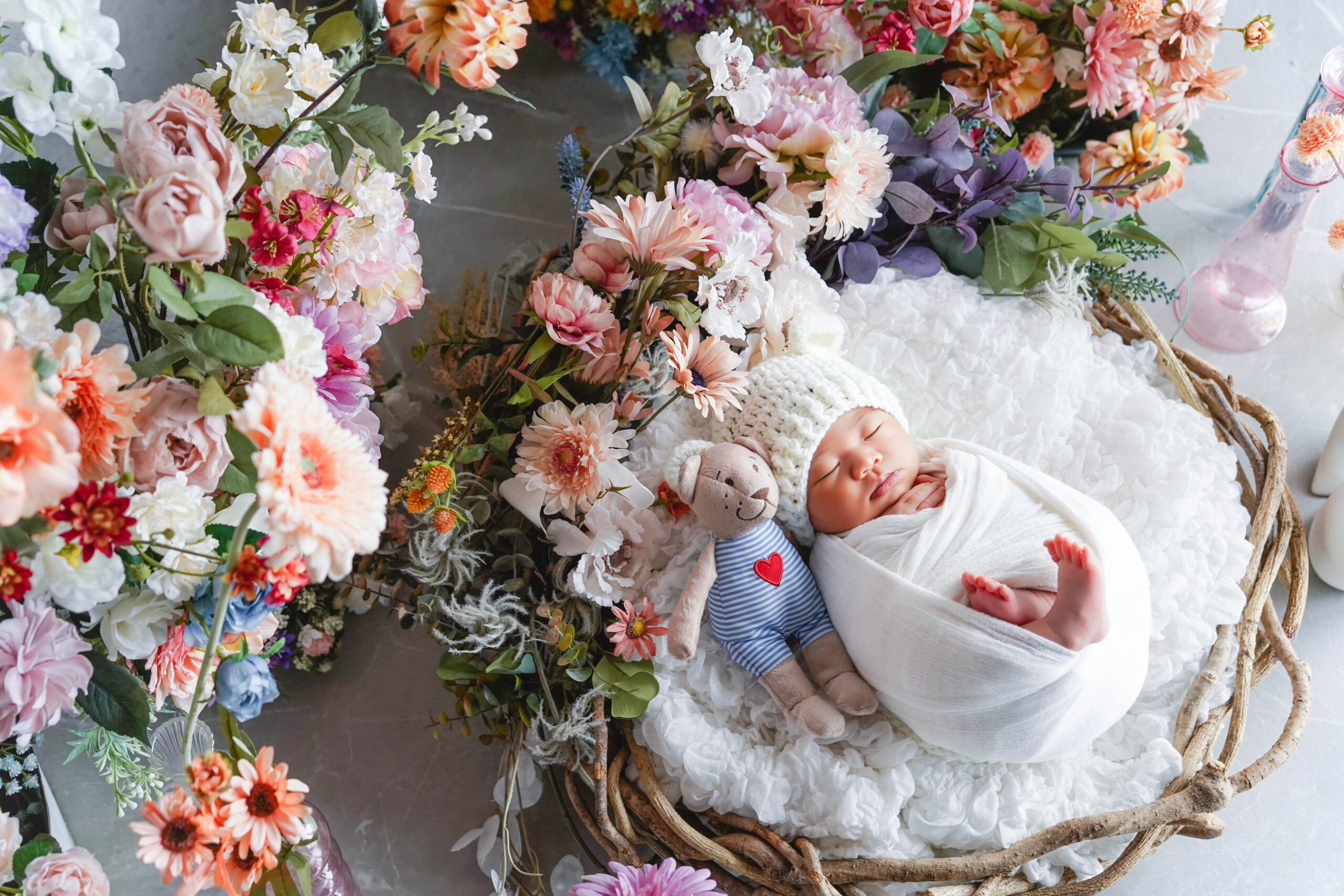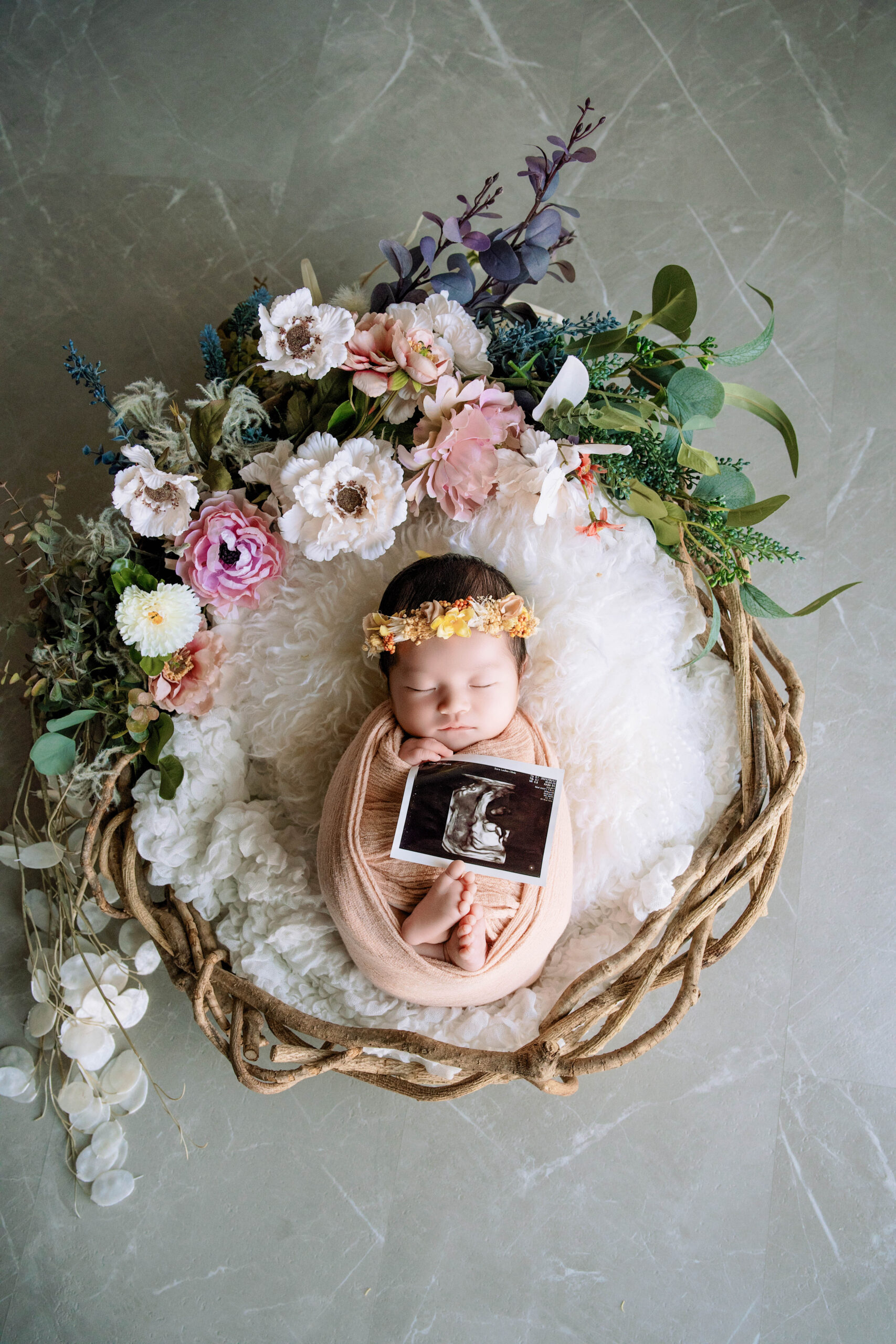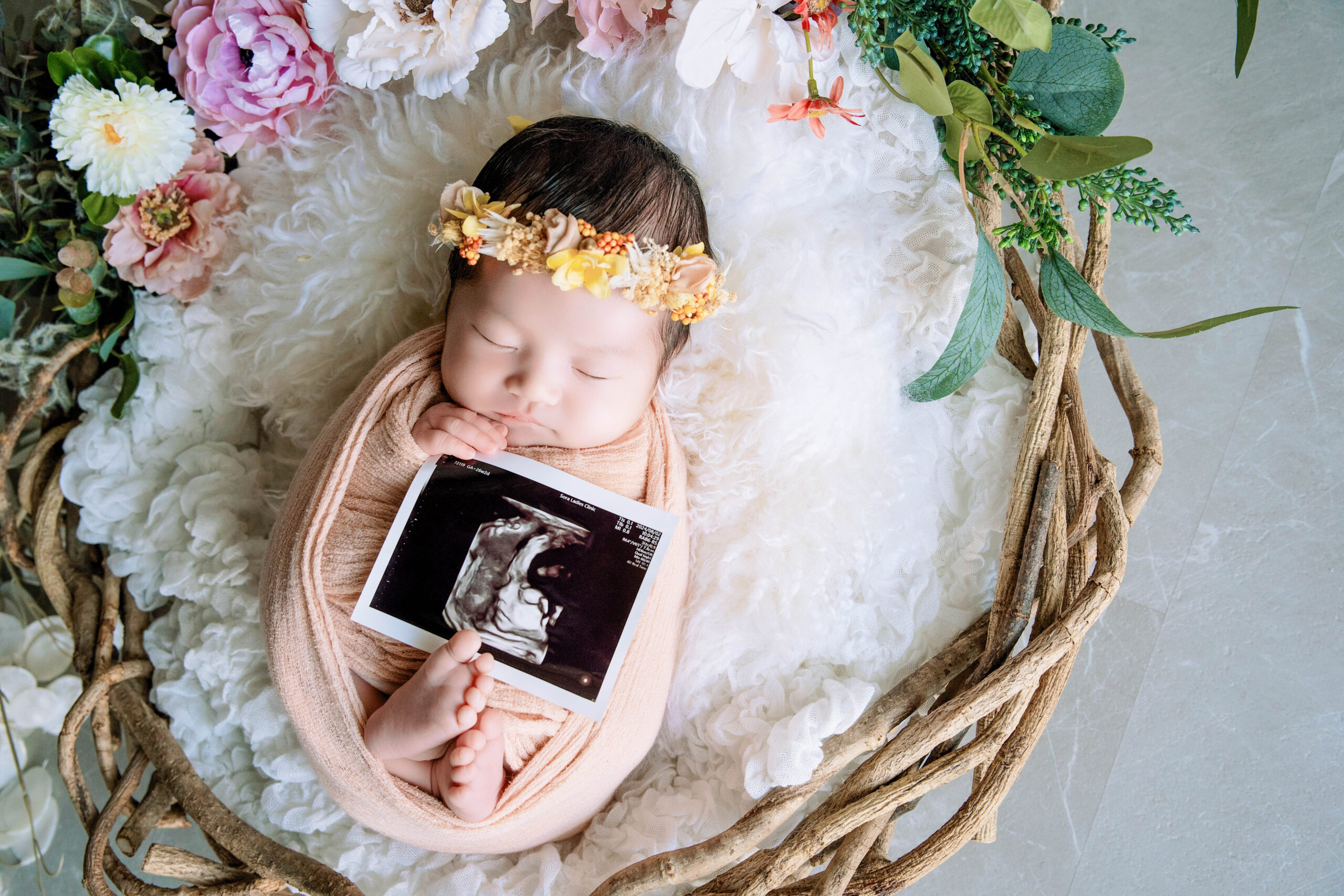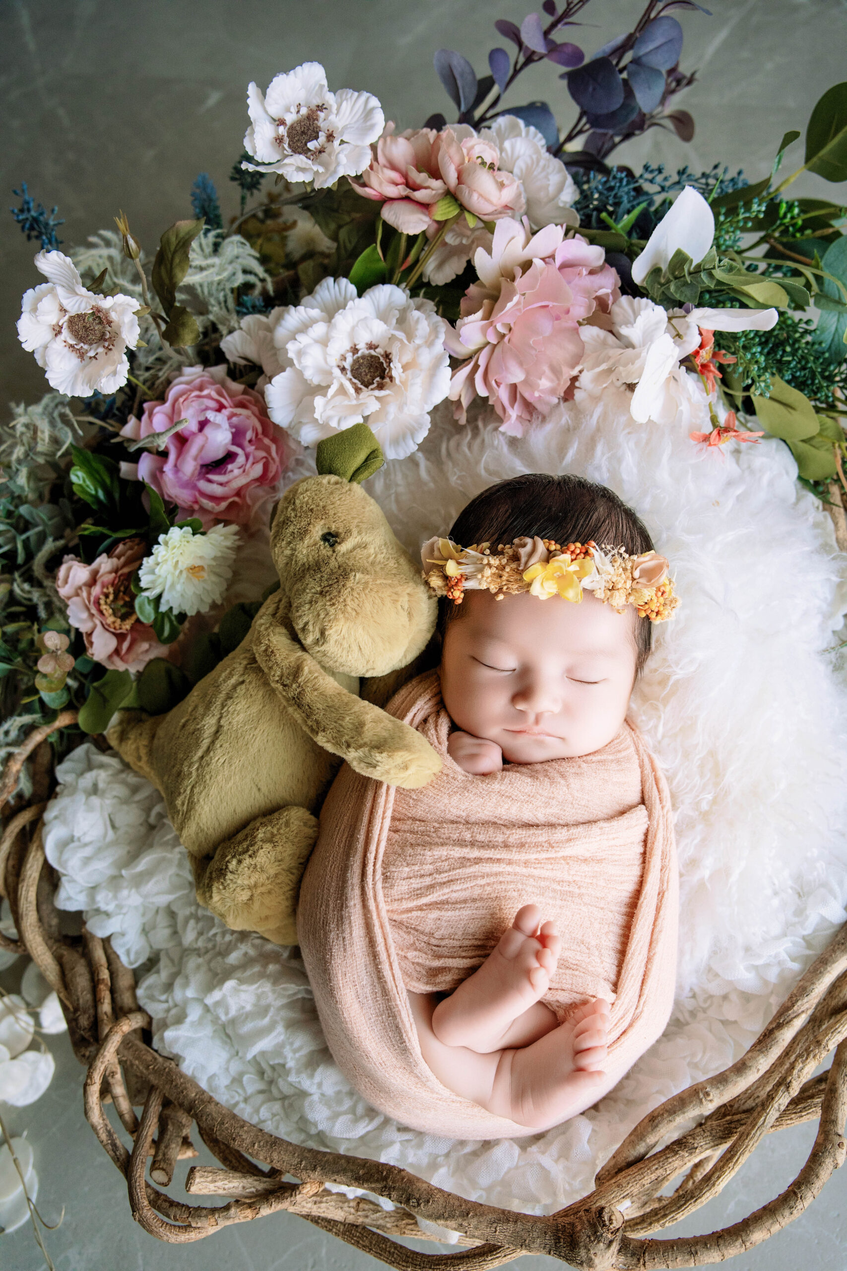 生まれてすぐの小さな姿を、こんなに可愛く、優しい光とふわふわの布に包まれて…まるで天使のような写真に仕上げていただけて感動!